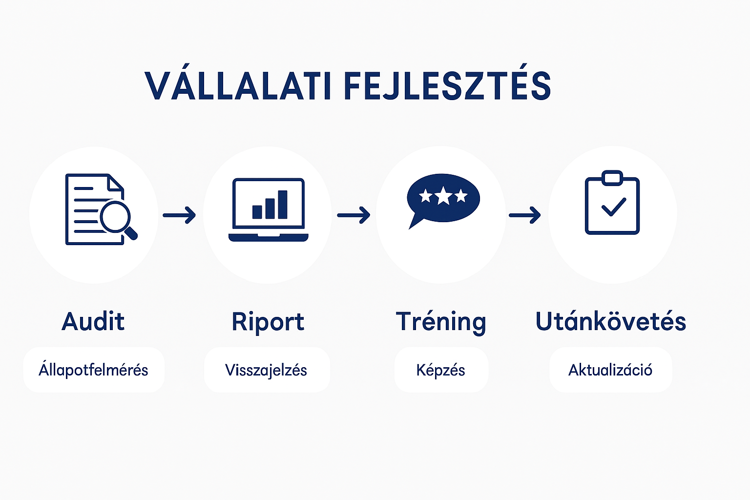 Az audit eredményeire építve célzott tréningeket ajánlok, amelyek közvetlenül a csapat aktuális helyzetére reagálnak.