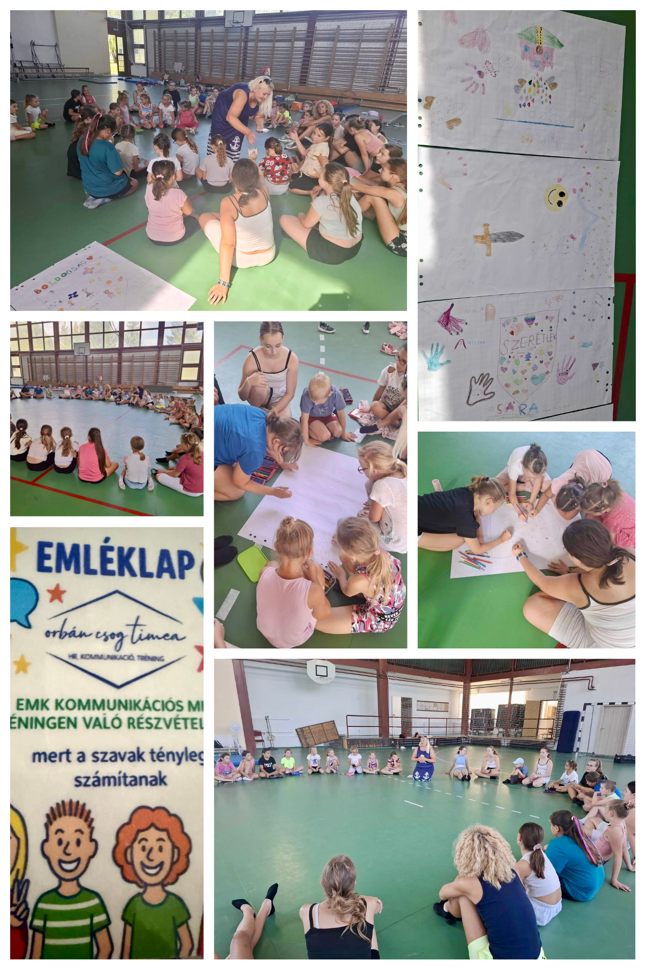 2024 nyarán meghívást kaptunk a fertőszentmiklósi táborba, ahol játékos, élményalapú foglalkozásokon keresztül vezettük be a gyerekeket az erőszakmentes kommunikáció világába. A résztvevők megtanulták, hogyan fejezhetik ki érzéseiket őszintén, és hogyan kezelhetik a mindennapi konfliktusokat empatikusan, figyelemmel és megértéssel. A közös játékok és beszélgetések nemcsak tudást adtak, hanem biztonságos teret is teremtettek az érzelmi fejlődéshez és a kapcsolódáshoz.
